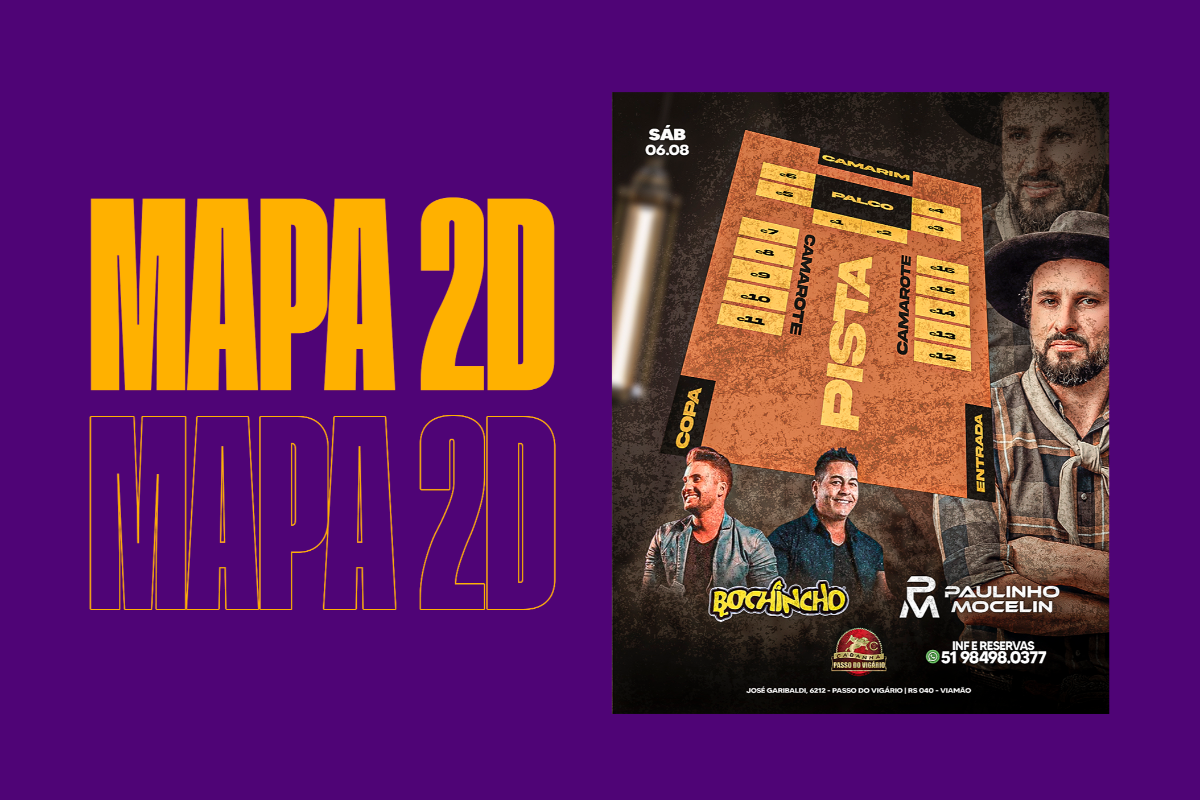 Você precisa de um mapa 2D para planejar um evento? Quer algo específico, como um mapa de assentos, áreas de circulação, palcos e entradas/saídas? Se quiser, posso ajudar a criar um esboço ou sugerir ferramentas para isso!
